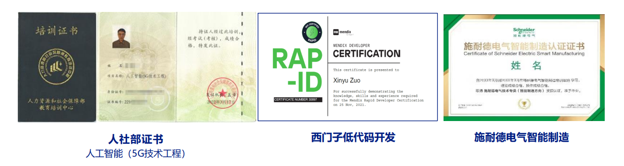 人社部人工智能(5G技术工程)培训证书/西门子低代码开发证书/施耐德电气智能